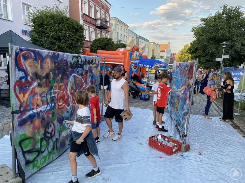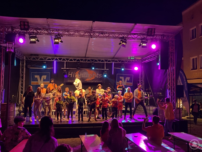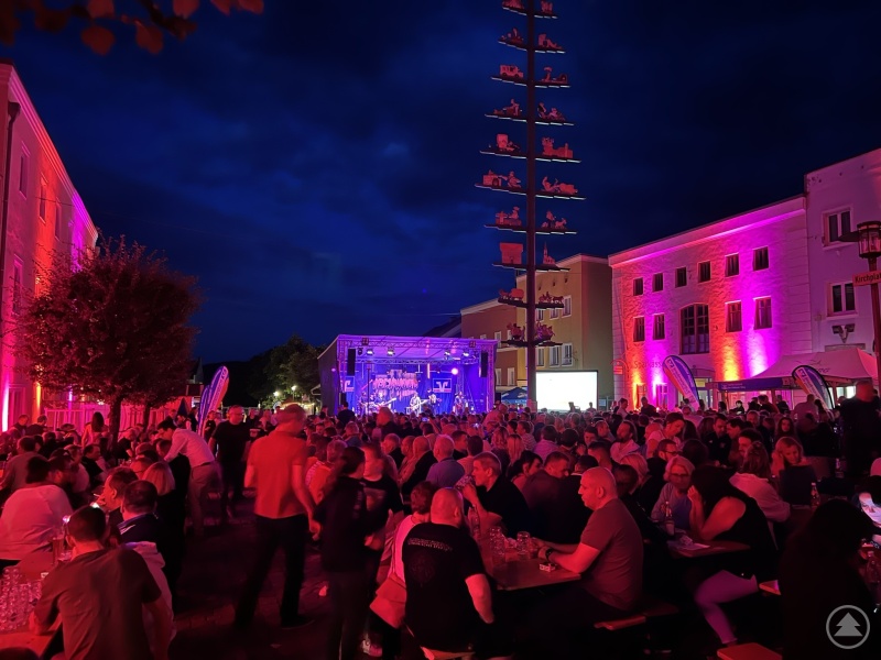 Am Freitag war der Name der österreichischen Band „Highlights“ Programm. Ein kurzer Regenschauer verscheuchte die anwesenden Besucher zwar kurz unter die Vordächer am Marktplatz, danach wurde aber wieder munter weitergefeiert.