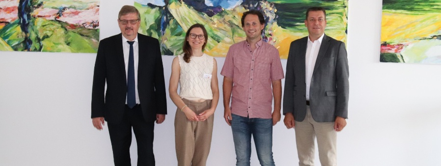 vo.li.: Amtsleiter Hans-Peter Schmucker, DAK-Referentin Julika Sonntag, Martin Buchner (Leiter des Gesundheitszirkels am ALE Niederbayern) und DAK-Bezirksleiter Christian Preiss bei der Informationsveranstaltung zur geplanten Mitarbeiterbefragung.
