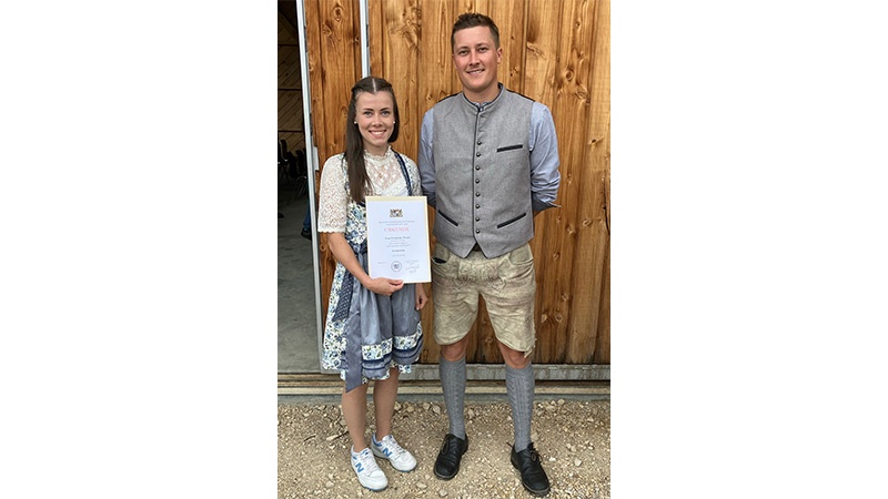 Daniel Spielbauer gratulierte Friederike Wetzel zur erfolgreich abgeschlossenen Ausbildung zur Forstwirtin.