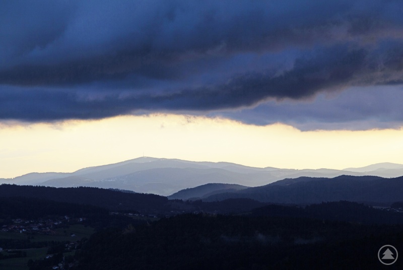 Kühl und nass hat sich der heurige August angelassen und die heißen und trockenen Wochen hinter sich gelassen. Länger anhaltender Regen und intensive kürzere Güsse bestimmten das Wettergeschehen in unserer Region. Das Foto zeigt tief liegende metallgraue „Nimbus-Wolken“, die sich zuvor mit heftigen Schauern abgeladen hatten, dahinter reißt der Himmel auf, er gibt den Blick frei auf die Höhenrücken des Brotjacklriegel. Das Foto entstand um halb 9 Uhr abends.