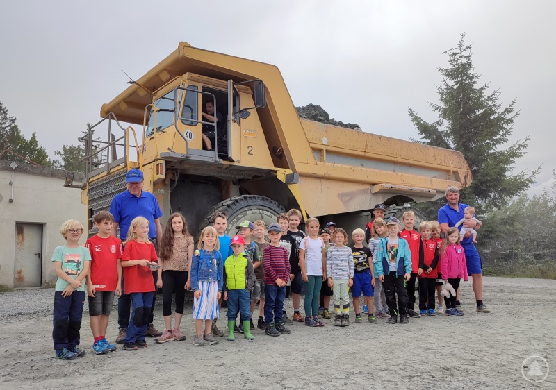 Kids erlebten im Steinbruch Thiele, wie aus Granit Schotter wird