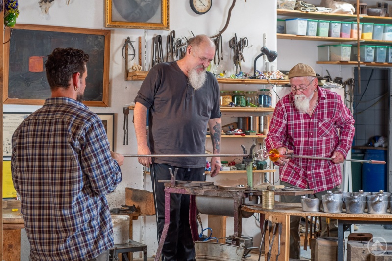 „Wir haben uns von Anfang an gut verstanden“, erzählt Florian. „Das geht auch nicht anders, denn vor dem Glasofen ist es eng und extrem heiß. Wenn es da Reibungen gibt, funktioniert die Sache nicht.“ Sie hat aber funktioniert. So gut, dass Florian bereits 2010 das Geschäft komplett übernahm. Die Glashütte ist in der Zeit immer mehr angewachsen - heute gibt es den Waldglasgarten als Touristenaktion, eine Galerie und nicht zuletzt ein großzügiges Areal, auf dem sich alles rund ums Glas und die Glaskunst dreht.