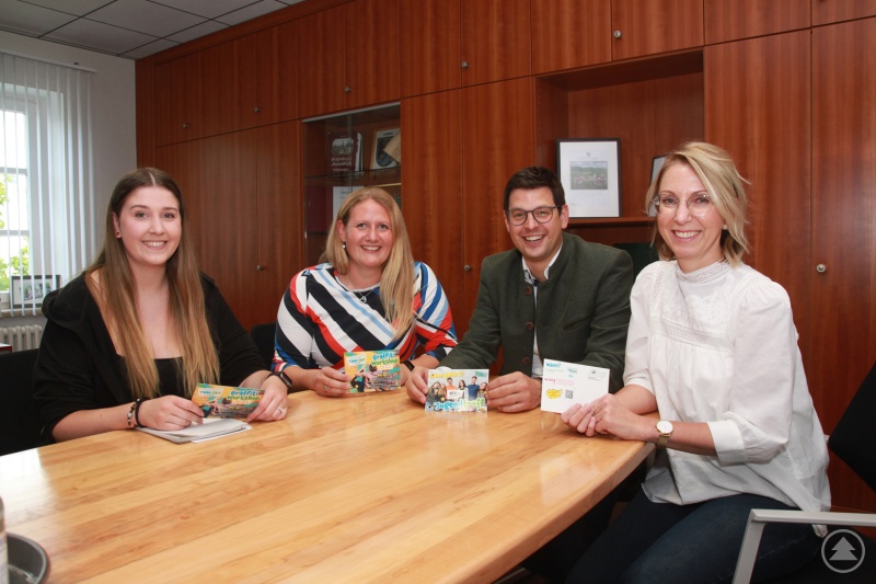 Christina Tschauder (v.l.) wurde bei einem Kennenlerngespräch von Jugendbeauftragter Carina Bredl. Bürgermeister Martin Pichler und Organisatorin Michaela Gampe herzlich willkommen geheißen. Foto: Markt Schönberg