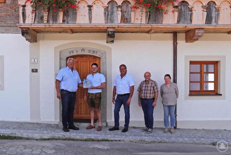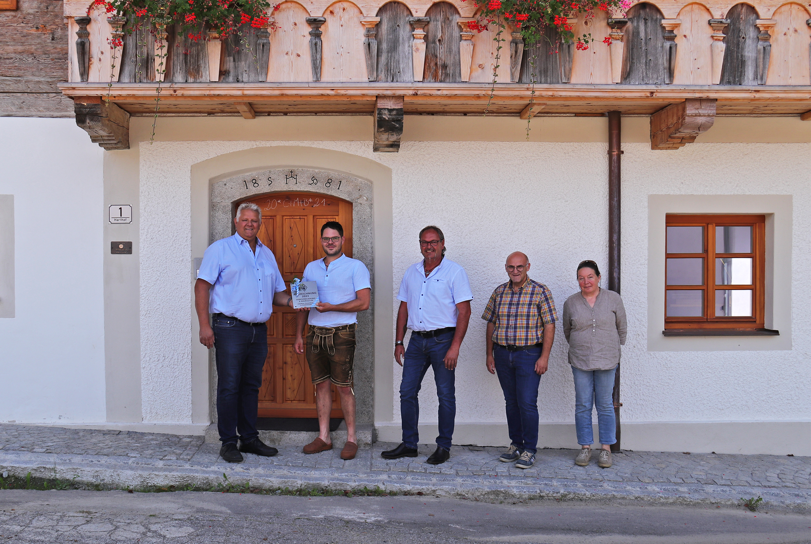 Als Anerkennung für die gelungene Sanierung des „Stadlerhauses“ erhielt Christoph Hollmayr-Kroner die Gewinner-Plakette im Wettbewerb „Dorferneuerung und Baukultur“. Das Foto zeigt (von links)