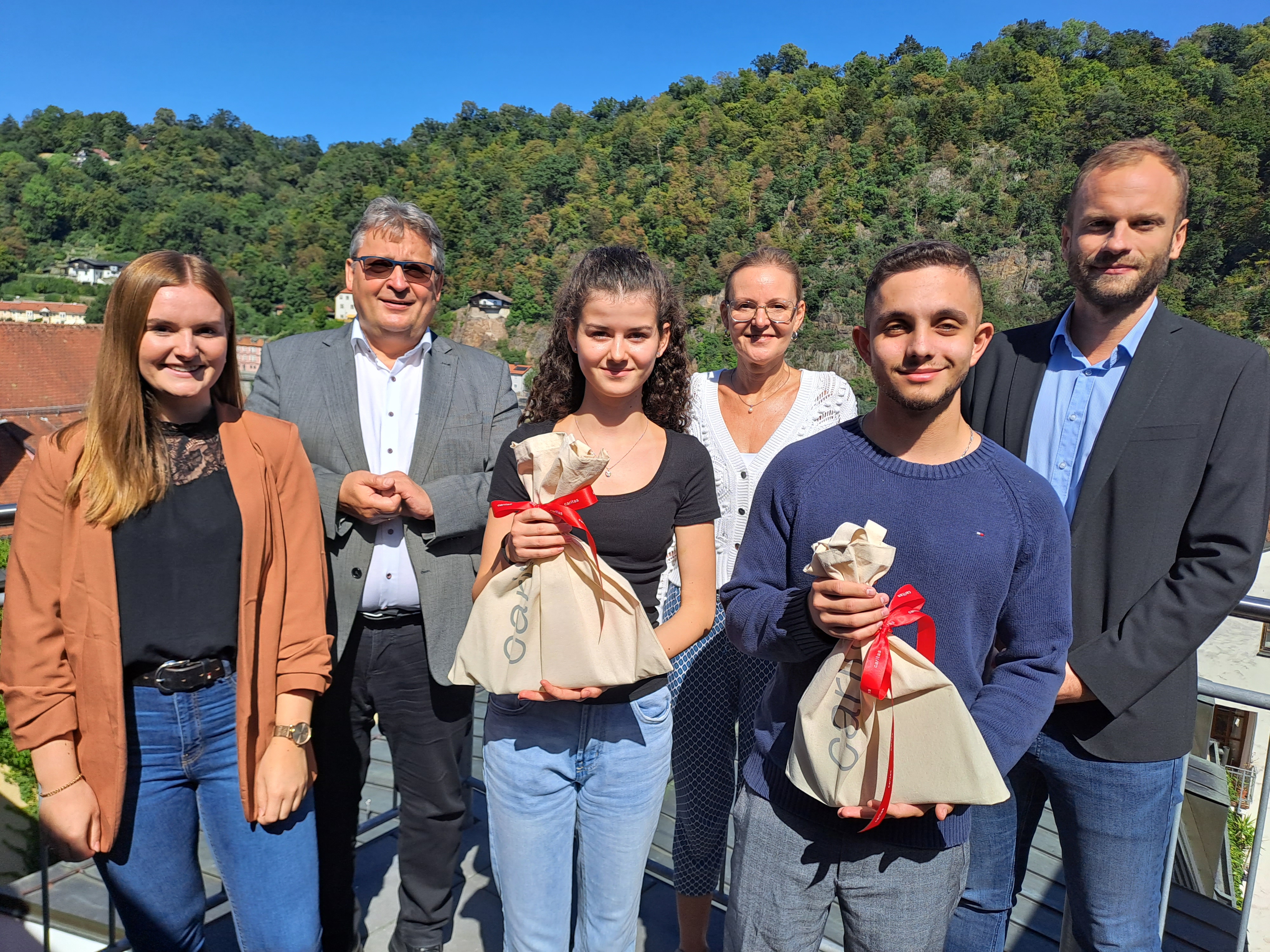 Sina-Marie Schulz (16) und Johannes Schlappinger (21) haben in der Zentrale ihre Ausbildung im Büromanagement angetreten. Die Caritasvorstände Mag.a (FH) Andrea Anderlik, MSc und Diakon Konrad Niederländer sowie der Personalchef Thomas Furthmeier und Sabrina Hoffmann, Ausbildungsleiterin, haben sie am Montag, 4. September, willkommen geheißen. Auf die Azubis, so Diakon Niederländer, warten vielfältige Dienste der Caritas, interessante und sichere Arbeitsplätze. Als einer der größten Arbeitgeber in der Region bietet die Caritas viele Möglichkeiten nach der Ausbildung übernommen zu werden. Sina-Marie Schulz hat in der Personalabteilung begonnen, Johannes Schlappinger in der Kita-Abteilung.
