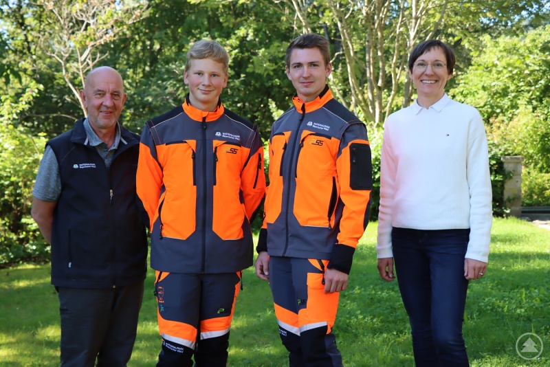 Beim Antrittsbesuch in Grafenau wünschte Ursula Schuster dem Duo einen guten Start: „Wir freuen uns immer wieder, wenn sich junge Menschen aus der Region für die Arbeit im Nationalpark begeistern können.“ Im Bereich der Forstwirte setzt die Verwaltung seit Jahren auf eine bedarfsgerechte Gestaltung von Ausbildungsangeboten. „Wenn absehbar ist, dass ältere Kollegen demnächst in den Ruhestand gehen, beginnen wir, deren Nachwuchs selbst auszubilden“, erklärt Franz Baierl, Sachgebietsleiter für Wald- und Flächenmanagement. „Das hat auch den Vorteil, dass erfolgreiche Auszubildende bei uns eine langfristige Perspektive haben.“