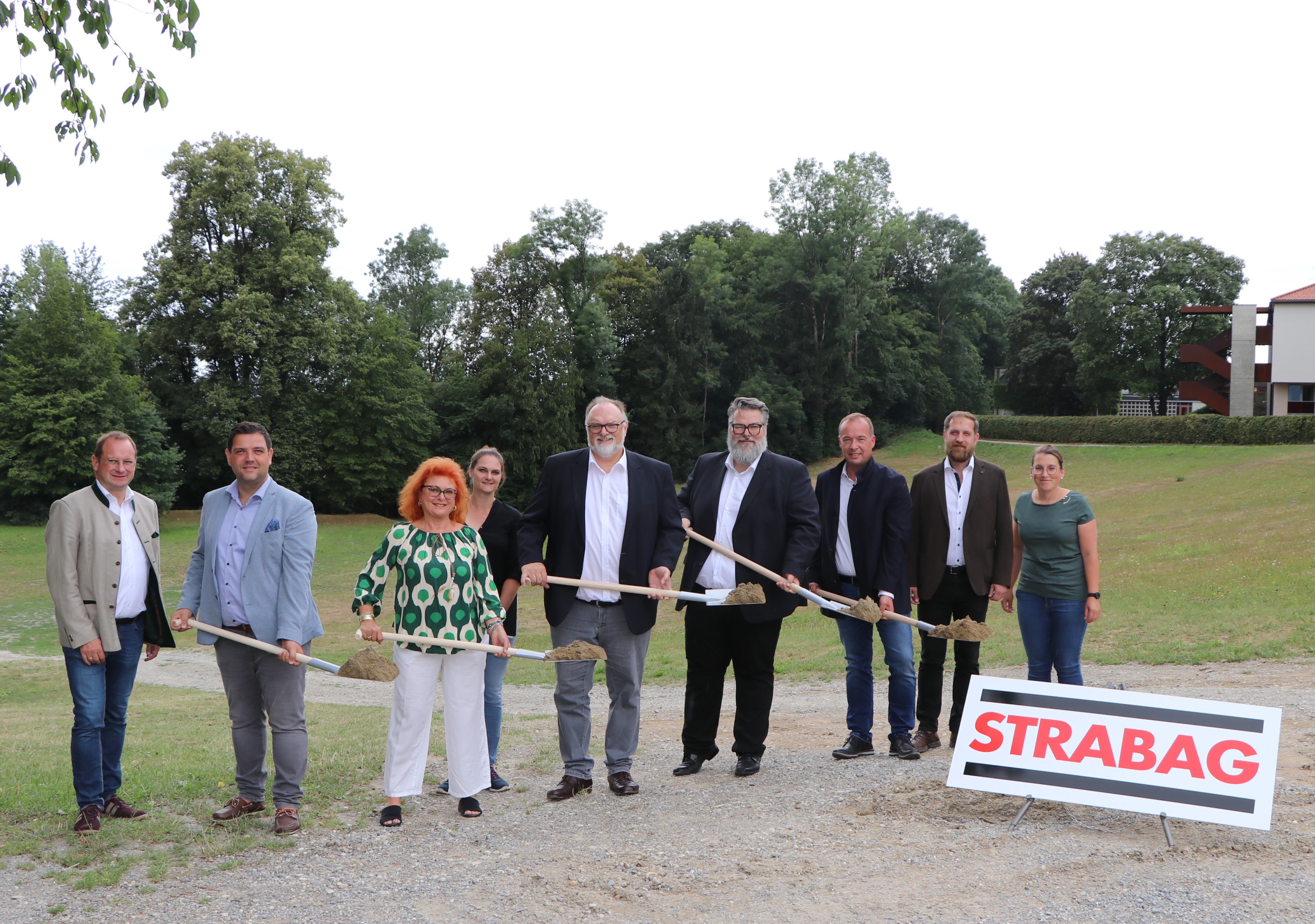 Zusammen mit Oberbürgermeister Jürgen Dupper (Mitte) erfolgte der Spatenstich für die Baumaßnahmen am Thingplatz mit (v. links) Dr. Bernhard Forster (Kulturreferent Stadt Passau), Bürgermeister Armin Dickl, weitere Vertreterin des Oberbürgermeisters Erika Träger, Maria Ziegler (Wagmann Ingenieure GmbH), Bürgermeister Andreas Rother, Georg Seidel (Bereichsleiter STRABAG AG), Korbinian Rank (Gruppenleiter STRABAG AG) und Veronika Geissler (Bauleitung STRABAG AG)