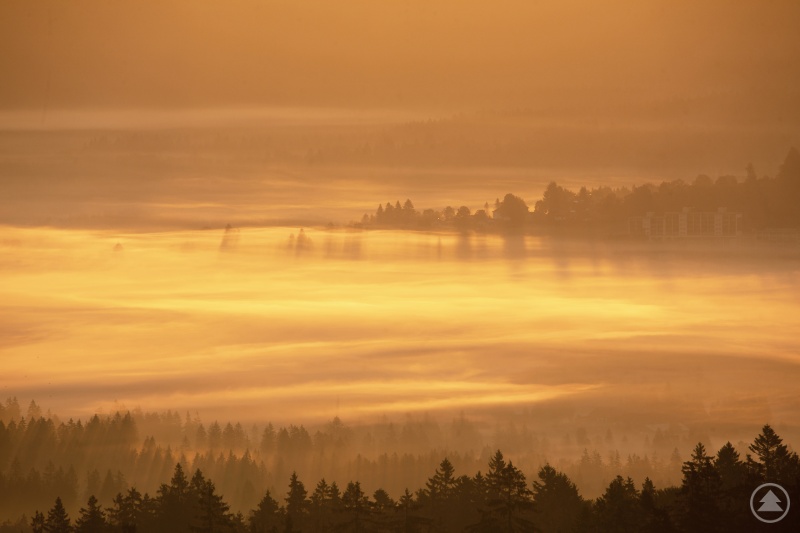 Der Herbstbeginn lässt über Nacht die Temperaturen immer mehr sinken. Dabei bilden sich Tau am Boden und an den Bachläufen wieder einzelne Nebelfelder. Besonders auffallend breitet sich der Morgennebel im Tal der kalten Moldau bei Haidmühle aus. Die aufgehende Morgensonne taucht den Nebelteppich in ein warmes Gold-Gelb. Kalendarischer Herbstbeginn ist heuer am 23. September!