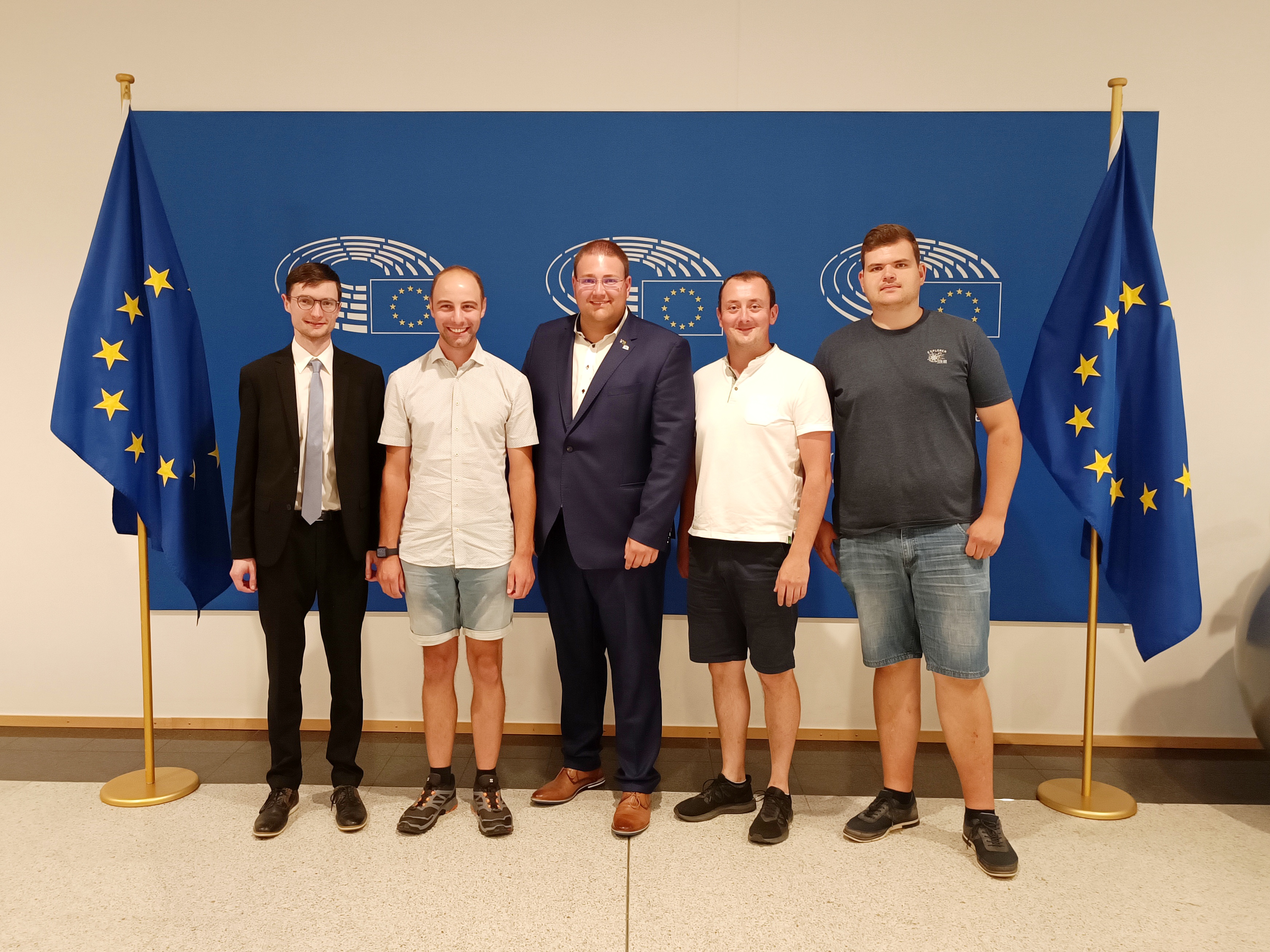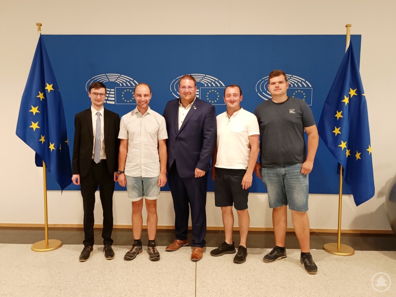 Auf Einladung des niederbayerischen Europaabgeordneten Manfred Weber besuchte eine Delegation des JU-Kreisverbandes Freyung-Grafenau das Europäische Parlament in Brüssel sowie verschiedene Städte in der belgischen Region Flandern: (von links nach rechts) Bezirksschriftführer Sebastian Graup, stellv. Kreisvorsitzender Dr.-Ing. Sebastian Weber, Kreis- und stellv. Bezirksvorsitzender Christoph Weishäupl, Kreisschatzmeister Ludwig König und Kreisgeschäftsführer Martin Höppler