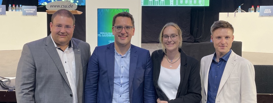 Im Zuge der turnusgemäßen Neuwahlen wurde Landesvorsitzender Christian Doleschal mit 182 von 206 gültigen Stimmen für eine dritte Amtszeit wiedergewählt. Über das beste Ergebnis in der Riege der stellvertretenden Landesvorsitzenden konnte sich der niederbayerische Vertreter Alexander Hannes (Zwiesel) freuen: Er wurde mit 93,3 % im Amt bestätigt. Als weitere stellvertretende Landesvorsitzenden wurden Dr. Nicole Kaiser (Oberfranken), Johannes Konrad (Unterfranken) und Dr. Ludwig Lenzgeiger (Schwaben) gewählt. Als Mitglied des als Deutschlandrat bezeichneten erweiterten Bundesvorstands der Jungen Union Deutschlands wurde mit Agnes Brücklmayer (Viechtach) auch ein Vertreterin der Region in ein bundesweites Gremium entsandt. Daniel Traxinger (Röhrnbach) ist dort weiterhin stellvertretendes Mitglied. Mit Kreis- und stellv. Bezirksvorsitzenden Christoph Weishäupl (Freyung) und Bezirksschriftführer Sebastian Graup (St. Oswald-Riedlhütte) wurden zudem zwei Vertreter des Kreisverbandes Freyung-Grafenau als Ersatzdelegierte in den JU-Deutschlandtag entsandt.