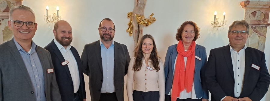 Kitas sind „Leuchttürme“ in der Gesellschaft und „Kirchorte“ sind sich (v.li.) Stefan Seiderer, Leiter der Abteilung Kita Caritas Passau, Paul Nowicki, Geschäftsführer KTK Bundesverband, Andreas Kindermann, Stabsstelle Kita-Pastoral, Dr. Alexa Glawogger-Feucht, Geschäftsführerin KTK Bayern, Dr. Hilke Gerber, Fachreferentin für Kindertagesbetreuung im Diözesan-Caritasverband München-Freising und Caritasvorstand Diakon Konrad Niederländer einig