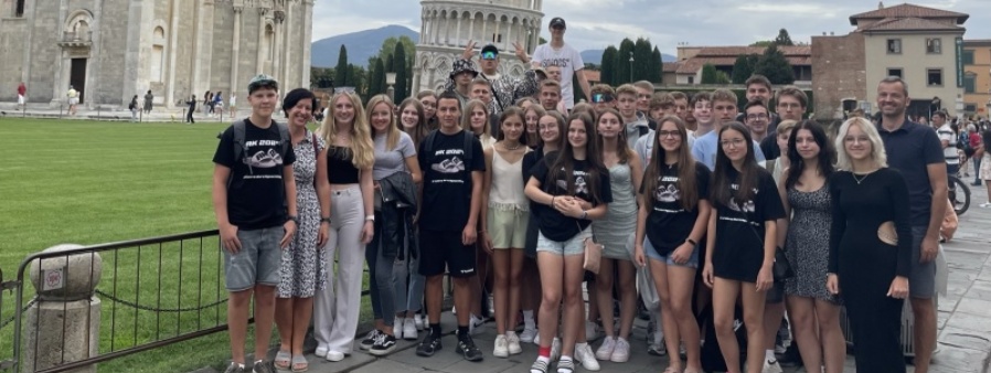 Abends stand dann der schiefste Turm der Welt, der Schiefe Turm von Pisa, auf dem Programm – für viele Teilnehmer das Highlight der Fahrt. Die Schülerinnen und Schüler konnten sich inmitten der toskanischen Architekturwunder fotografieren und natürlich bildete der weltberühmte Turm auch die Hintergrundkulisse für unzählige Klassenfotos.