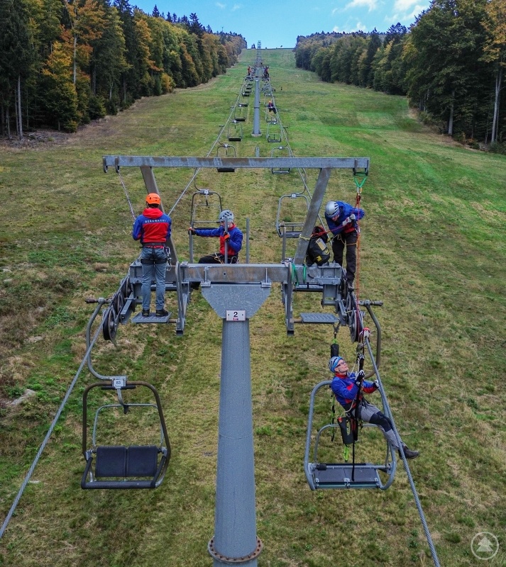 Dabei trainierten die Bergretter der Bergwacht Bereitschaften Wolfstein und Passau/Haidmühle zusammen mit den Feuerwehren aus Mitterfirmiansreut, Philippsreut und Annathal und dem Zweckverband des Skizentrums Mitterdorf einen möglichen Stillstand des Liftes.
