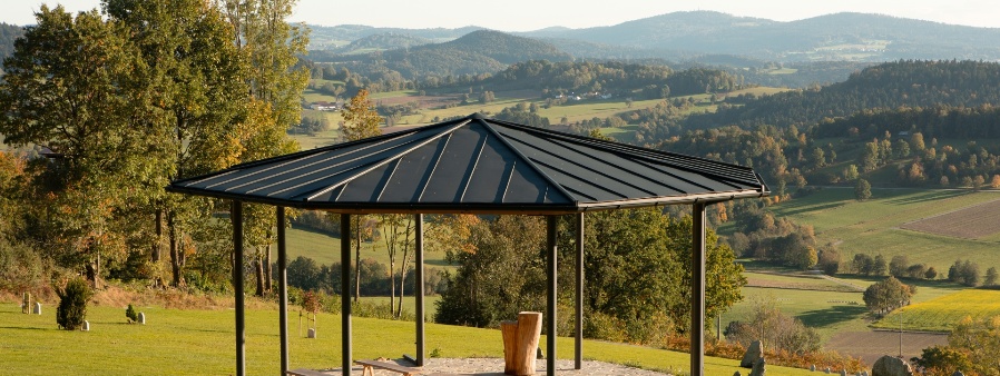 Es ist wohl einer der schönsten Orte, die einem Friedhof in grüner Natur zuteil werden kann: Ein Wiesen- und Mischwaldhang gegen Süden über dem Bayerwalddorf Unterseilberg nahe Grainet! Der Blick ins nahgelegene Tal und die weite Sicht auf die Höhenrücken des Vorwalds gleichen einer traumhaften Illusion. Hier liegt auf 700 Metern Meereshöhe eine Ruhestätte für Verstorbene und ein Begegnungs- und Verweilort für Angehörige und Freunde, die landschaftsarchitektonisch überlegt strukturiert wie in optischer Leichtigkeit und großzügiger Anlage auf 30 000 qm harmonisch in sich fein abgestimmt ist. Dabei befinden sich die Grabstätten schön gruppiert, mit rohen heimischen Granitsteinen versehen, auf freiem Wiesengrund, und, je höher man steigt, in bewaldeten Arealen. Mittendrin steht ein Pavillon, etwa 5 Meter hoch, gezimmert aus Holzbalken, aufgelockert ästhetisch, transparent auf Metallsäulen ruhend. Er stört nicht, im Gegenteil, er schafft örtlich, wie auch im übertragenen Sinn, Mitte, in der Trauerfeierlichkeiten, Lieder und Gebete, Stillsein, Innehalten und Nachdenken die Totenruhe begleiten. Vor einem Ambo und einer Urnenstele sind unter den achteckigen Bau zahlreiche Holzsitzbänke angebracht. Besonders attraktiv sehen die „Themengräber“ aus, rundliche Rabatten, eingefasst mit Natursteinen und mit duftenden Blumenstauden geschmückt, die bemerkenswerte Aufmerksamkeit auf sich ziehen: In erster Linie das Rosenfeld in weiß-roten Tönen, dann aber auch das Lavendel-, Blumen-, Bonsai- und Steinfeld. Verschiedene Varianten der Bestattung kommen individuellen Wünschen entgegen: So kann man sich entscheiden zwischen Wiesen-, Baum-, Felsen- und Themenbestattung, dazu gibt es sogenannte „anonyme“ Beisetzungsorte. Inhaber und Betreiber des Naturbestattungsgeländes ist Toni Sammer, er ist ausgebildete Bestattungsfachkraft. Im Jahr 2021 hat er den Friedhof „ins Leben gerufen“. Es war ihm ein Anliegen in Eigeninitiative etwas Besonders zu machen, für Verstorbene in achtsamer und einladender Weise in Gottes Natur einen würdigen Platz der letzten Ruhe zu schaffen. Nicht nur Familien, einzelne Personen, sondern auch offizielle Bestatter können die Gelegenheit, die der Graineter Naturfriedhof bietet, wahrnehmen. Dieser wird in Zusammenarbeit mit der Gemeinde betreut, wobei er als Ort des Gedenkens die bischöfliche Weihe der Diözese Passau erhalten hat.