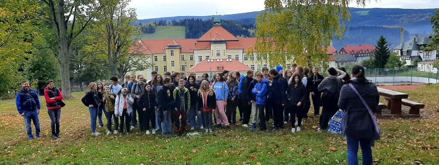 25 Schülerinnen und Schüler aus den 7. und 8. Klassen machten sich gemeinsam mit den Lehrkräften Lisa Koch und Andreas Mühlbauer auf den Weg in die Grafenauer Partnerstadt Kasperske Hory - Bergreichenstein. Dort traf sich die Grafenauer Gruppe mit tschechischen Schülern und Lehrkräften. Gemeinsam erlebte man einen interessanten Tag mit vielen Eindrücken.