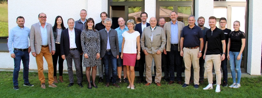 Unterstützer, Paten und Landwirte im Projekt Klima-Landwirtschaft in Südostbayern beim gemeinsamen Treffen im Landratsamt Freyung-Grafenau: (v.l.) Reinhard Tolksdorf (Landratsamt Freyung-Grafenau, Sachgebietsleitung), Franz Brunner (stellv. Landrat Freyung-Grafenau), Eva Osterer (Landratsamt Freyung-Grafenau, Klimaschutzmanagement), Sebastian Pauli (FarmFacts), Roland Altmann (Bereichsleiter Raiffeisen Cham), Verena Holzbauer (Landratsamt Freyung-Grafenau, Klimaschutzmanagement), Christoph Ratzinger (Bioenergie Süd, Hohenau), Wolfgang Angermair (VISTA, München), Albert Reyhofer (Klima_Landwirt FRG), Uschi Diepolder (ILE Rott&Inn), Hubert Holzbauer (Knaus Tabbert, Jandelsbrunn), Kurt Herbinger (BayWa, Projektleitung PKL), Franz Krückl (Klima-Landwirt FRG), Willi Lindner (Klima-Landwirt Rott&Inn), Josef Gais (Bürgermeister Hohenau), Josef Niedermeier (AELF Regen), Johannes Gastinger (Landratsamt Freyung-Grafenau, Wirtschaftsreferent), Ludwig Piser (AELF Regen), Pia Hauptmann (AELF Regen).