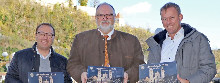Rühren die Werbetrommel für die Adventskalender-Aktion: Stefan Aigner (von links), Präsident der Lions Hilfe Passau, Oberbürgermeister Jürgen Dupper und Dr. Stefan Mang, Präsident des Lions Clubs Passau.
