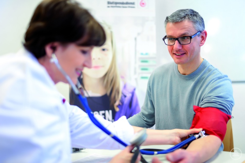 Im Anschluss folgt ein kurzer Check-up bei Arzt oder Ärztin. Hier können nochmal eventuelle Fragen zum Fragebogen aufgegriffen werden. Außerdem werden Blutdruck und Puls geprüft sowie die Temperatur gemessen.