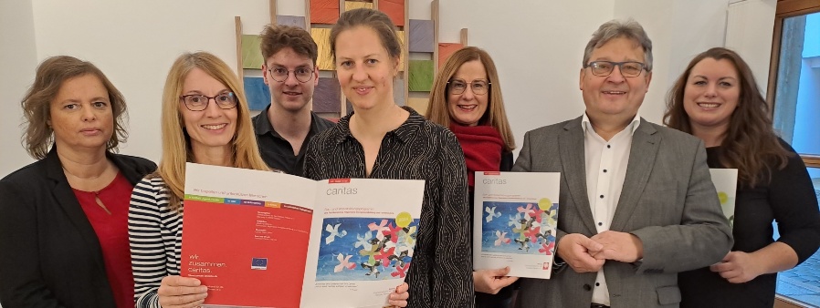 Insgesamt über 180 Fortbildungen hat die Bildungsabteilung des Caritas-Diözesanverbandes für 2024 vorbereitet. Das Team bei der Präsentation v.li.: Denise Oberneder, Karin Schlappinger, Fritz Müller, Theresa Rinner, Michaela Meindl, Diakon Konrad Niederländer, Anna Slavicek.