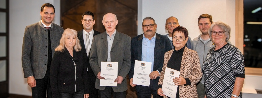 Im Rahmen einer kleinen Feierstunde im kleinen Sitzungssaal des Landratsamtes Freyung-Grafenau nahmen die drei Geehrten die Urkunden entgegen; in Begleitung der jeweiligen Bürgermeister. Auch einige Familienmitglieder waren mit dabei. Das kam nicht von ungefähr, spielt der Verbund von Familie und Ehrenamt doch eine wichtige Rolle. „Kommunalpolitiker wenden viel Zeit auf, um sich für die Heimat und die Menschen, die hier leben, aktiv einzusetzen. Einerseits in Präsenz zum Beispiel in den Gremien, andererseits in Form von Vorbereitungen und Gesprächen mit den Bürgern. Ein großer Dank geht auch an die Familie der Geehrten, denn sie begleitet und trägt das Ehrenamt mit“, so Sebastian Gruber wertschätzend. Die kommunale Ebene sei besonders wichtig, um viel für die Heimat zu bewegen. „Die Geehrten zeigen seit Jahrzehnten viel Engagement in der Kommunalpolitik. Sie gewährleisten Beständigkeit in den Gremien und treffen, gemeinsam mit vielen anderen engagierten Kommunalpolitikern, Entscheidungen zum Wohle der Bürger in unserer Region“, dankte Landrat Gruber.