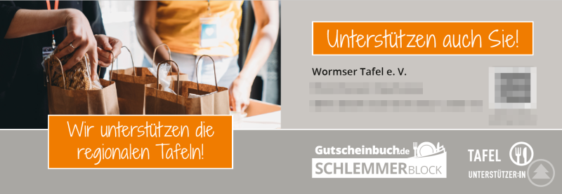 Schlemmerblock der Auflage 2023 (Zeitraum: 1.1.23-1.12.23) spendet das Wormser Unternehmen 1,00 € an die jeweilige regionale Tafel.