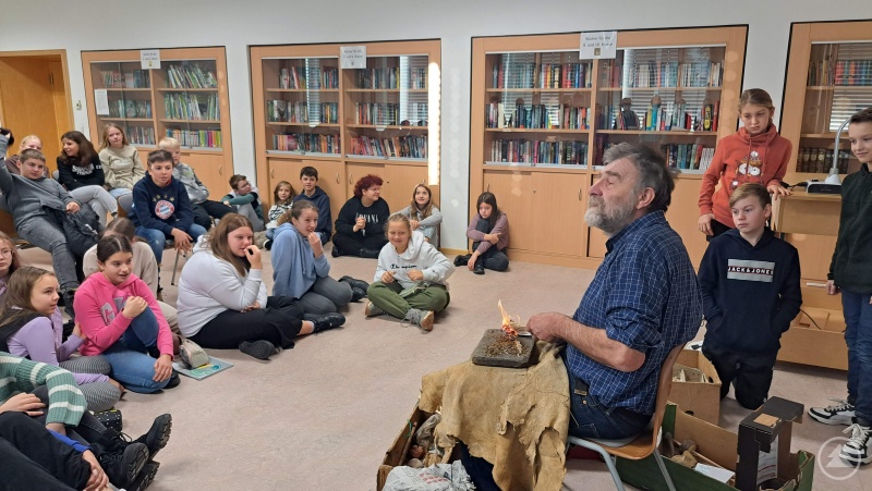 Der Archäologe Lothar Breinl entfachte bei den Sechstklässlern der Realschule Grafenau in mehrerlei Hinsicht das Feuer.