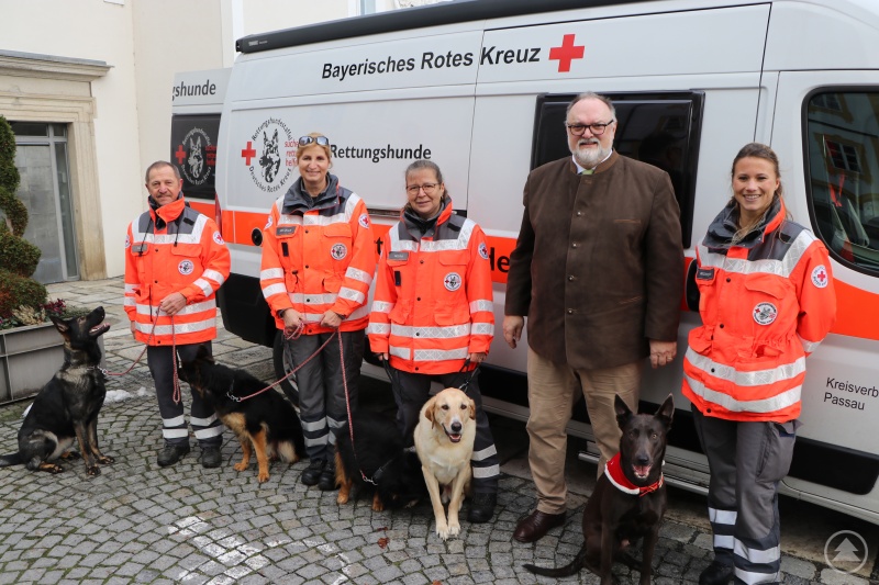 Die Rettungshundestaffel des BRK-Kreisverbandes Passau hat Oberbürgermeister Jürgen Dupper einen Besuch abgestattet. Bei dieser Gelegenheit überreichte das Stadtoberhaupt einen gesonderten finanziellen Zuschuss in Höhe von 250 Euro an den Staffelleiter Karl Deml.