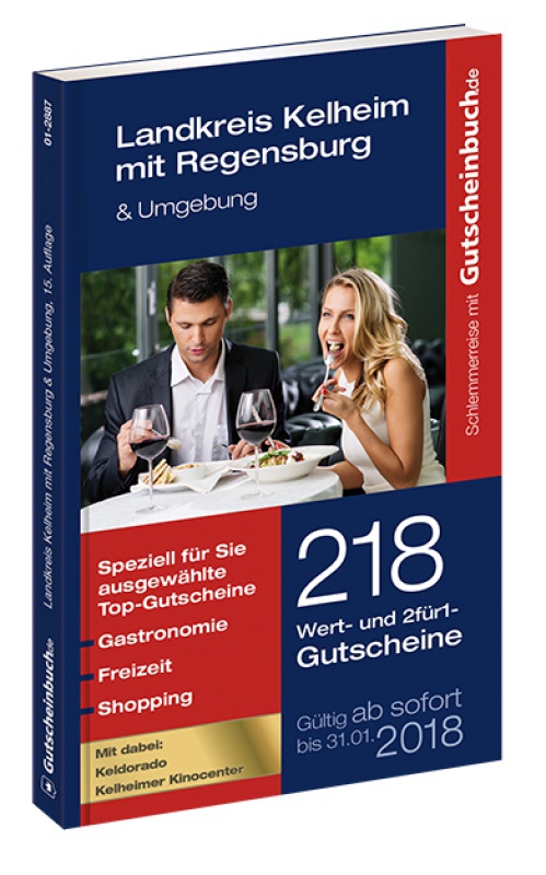 Wie wäre es einmal wieder mit einem schönen Abendessen zu zweit, einem erholsamen Tag in der Therme oder einer ausgiebigen Shoppingtour? Die „Schlemmerreise mit Gutscheinbuch.de Landkreis Kelheim mit Regensburg & Umgebung“ macht’s möglich. Das blaue Original enthält 218 hochwertige 2für1- und Wertgutscheine aus den Bereichen Gastronomie, Wellness, Freizeit, Kultur, Shopping und Online Shops. Restaurants spendieren zum Beispiel das zweite Hauptgericht, beim Wellness bekommt der Partner die Massage geschenkt, im Freizeitpark ist der zweite Eintritt gratis oder im beliebten Online Shop winken satte Rabatte.