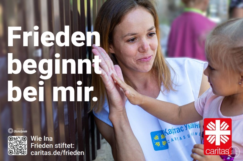 In vielfach friedloser Zeit setzt die Caritas im Jahr 2024 einen Schwerpunkt in der Friedensarbeit. Es geht mit der bundesweiten Jahreskampagne um den großen Frieden in der Welt und in der Gesellschaft, der bei jedem selbst beginnt. Deshalb das Leitwort: „Frieden beginnt bei mir“.