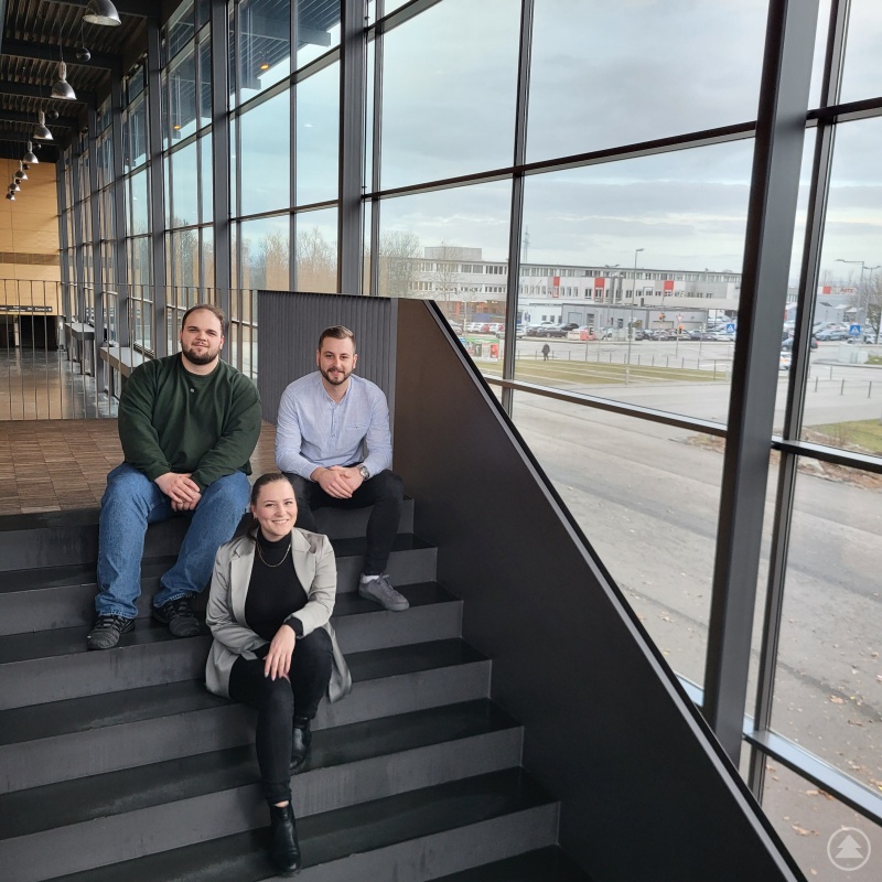 Die derzeitigen Azubis der Stadt Passau Marius Ciupka (von links), Viktoriya Fomina und Florian Hermann rühren die Werbetrommel für die 14. Passauer Ausbildungsmesse im Messepark Kohlbruck.