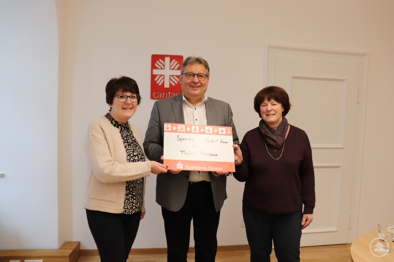 Der Katholische Frauenbund Passau-Innstadt durfte sich in den letzten Monaten über gute Einnahmen freuen, die auch wieder einem guten Zweck zu Gute kamen. So konnten Judith Biebl (links im Bild) und Gisela Silberhorn vom Frauenbund-Vorstandsteam dem Bischöflich Beauftragten Diakon Konrad Niederländer für die Caritas Passauer Tafel einen großzügigen Spendenscheck in Höhe von 500 Euro überreichen.