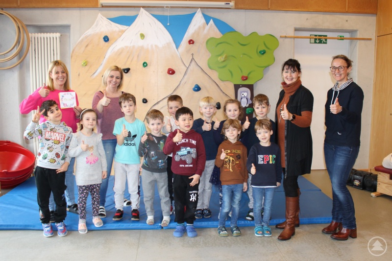 v.l Christiane Popp, Verena Fuchs, Eva-Maria Kelch, Sabine Bauernfeind mit den Kindergartenkindern