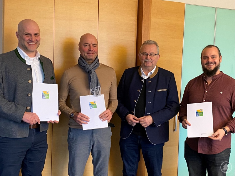 „Wir wollen nachhaltig sein“ - Auszeichnung „Umwelt- und Klimapakt Bayern“ für Donautal Geflügelspezialitäten, Schmalhofer Mühle, Kaminkehrermeister Anton Drexler und die Firma GH Holzhauser Electronic