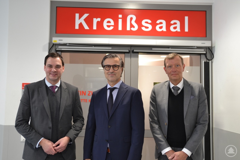 Landrat Sebastian Gruber und der Kliniken-Geschäftsführer Marcus Plaschke begrüßen den neuen Chefarzt recht herzlich am Freyunger Krankenhaus