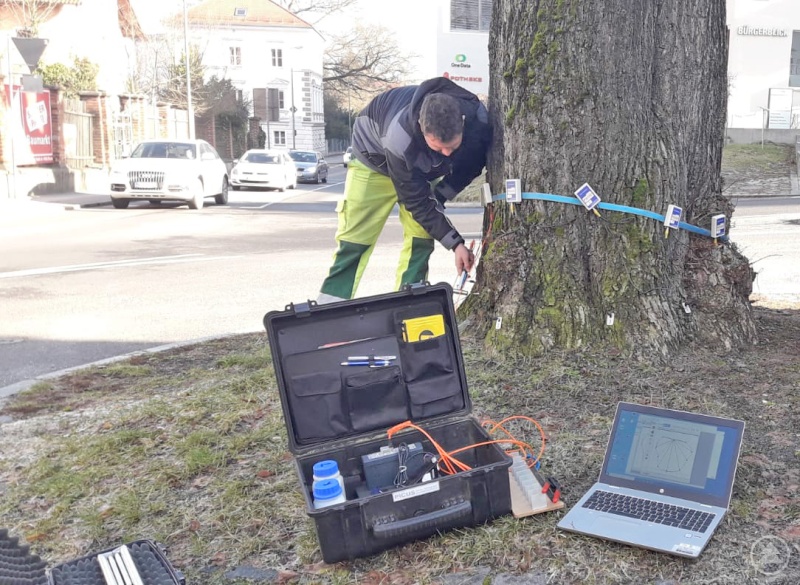 Zur finalen Beurteilung des Zustands des Baumes führte die Stadtgärtnerei erneut eine Schalltomographie durch.