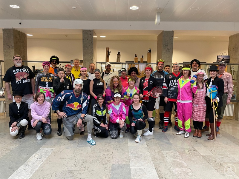Es lebe der Sport! Die Lehrkräfte der Realschule Grafenau präsentierten sich am Unsinnigen Donnerstag sportlich.