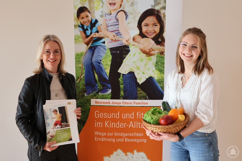 (v.l.) Projektkoordinatorin Monika Rothbächer und Julia Zitzlsperger vom Sachgebiet Ernährungsbildung informieren über die neuen Ernährungs- und Bewegungskurse des AELF Passau.