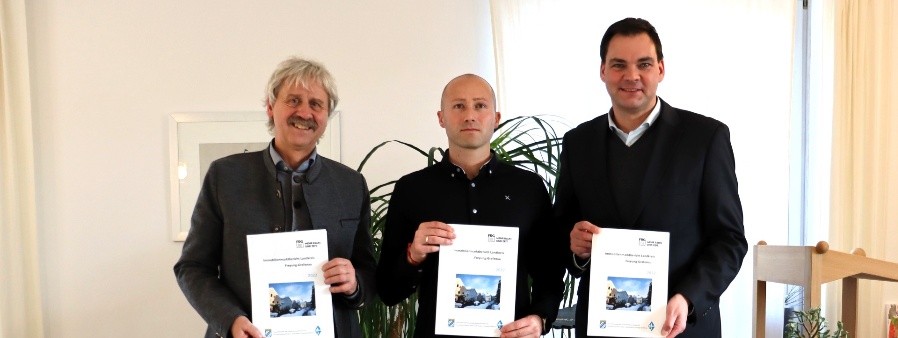 163,2 Millionen Euro wurden 2022 am Immobilienmarkt im Landkreis Freyung-Grafenau umgesetzt. Zwei Prozent mehr als im Jahr zuvor. Darüber freuten sich bei der Präsentation des Immobilienmarktberichts Landrat Sebastian Gruber (rechts), Regierungsdirektor Heinrich Höcherl (links) und Andreas Dötter von der Geschäftsstelle Gutachterausschuss.