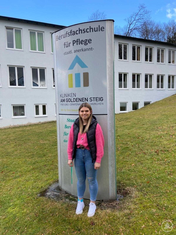 Frau Lea Fiedler aus Waldkirchen hat bereits eine Ausbildung zur Zahnmedizinischen Fachangestellten (ZFA) absolviert. Am 01.09.2023 ist Frau Fiedler an der Berufsfachschule für Pflege in Freyung der Kliniken Am Goldenen Steig gleich ins 2. Ausbildungsjahr eingestiegen. „Die abwechslungsreiche Ausbildung in Theorie und Praxis und die hochqualifizierte Betreuung durch die Lehrkräfte an der Berufsfachschule und der Praxisanleiter in den Einsatzgebieten ermöglichten der Umschülerin einen reibungslosen Einstieg. Auch die Vergütung im 2. Ausbildungsjahr von über 1400 Euro und im 3. Ausbildungsjahr über 1500 Euro in der Ausbildungszeit und das Einstiegsgehalt von über 3300 Euro (jeweils plus Zeit- und Schichtzuschlägen) sind beachtlich,“ freut sich Frau Fiedler.