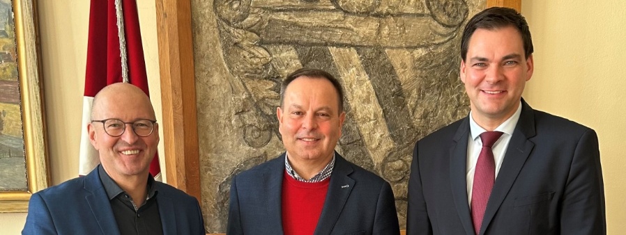 Landrat Sebastian Gruber (v.r.n.l.) mit dem Bürgermeister von Prachatitz und Abgeordneten im  tschechischen Parlament Jan Bauer und Geschäftsführer der EUREGIO Kaspar Sammer.
