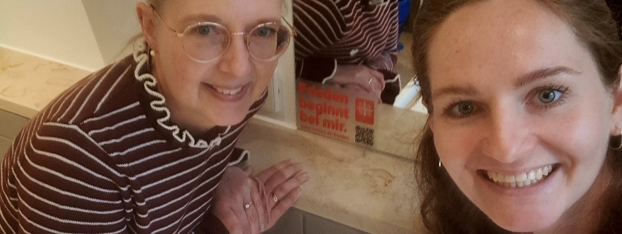 Lena Steininger macht es vor: Aufkleber auf die Spiegel und los geht`s! „Frieden beginnt bei mir“