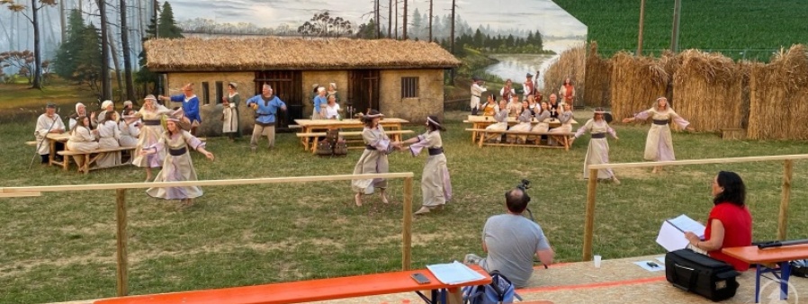 Szenenfoto von Proben des 2023 in Wurmannsquick aufgeführten Festspiels „Der Wasservogel“