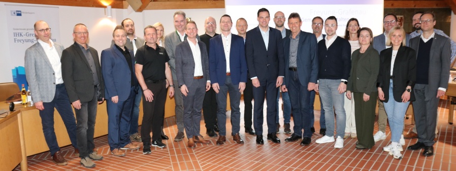 Das IHK-Gremium Freyung-Grafenau um Vorsitzenden Jürgen Greipl (10.v.l.) diskutierte mit Landrat Sebastian Gruber (12.v.l.) über die aktuellen Herausforderungen der regionalen Wirtschaft