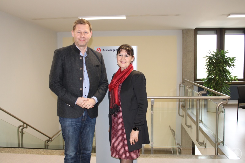 Eva-Maria Kelch, Vorsitzende der Geschäftsführung der Agentur für Arbeit Passau, empfing den Bundestagsabgeordneten Thomas Erndl (CSU) zu einem Gespräch und informierte über die aktuelle Situation am Arbeitsmarkt für die Stadt Passau und die beiden Landkreise Passau und Freyung-Grafenau.