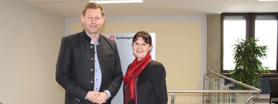 Eva-Maria Kelch, Vorsitzende der Geschäftsführung der Agentur für Arbeit Passau, empfing den Bundestagsabgeordneten Thomas Erndl (CSU) zu einem Gespräch und informierte über die aktuelle Situation am Arbeitsmarkt für die Stadt Passau und die beiden Landkreise Passau und Freyung-Grafenau.