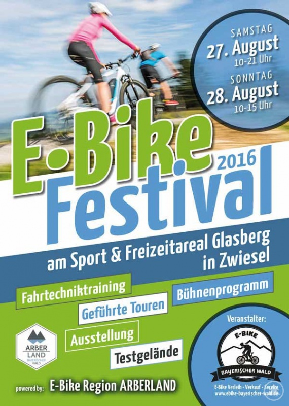 Familienurlaub mit dem Fahrrad ist eine herausfordernde Sache. Manch einer wird die  Situation kennen: Der ambitionierte Vater sprintet vorne weg, während die Mutter nach der ersten Steigung ihre Kinder aufsammelt. „Das passiert uns beim E-Bike nicht“, schmunzelt Florian Hollmann, Betreiber des Sport- und Freizeitareals Glasberg. Er ist selbst E-Bike-Verleiher und Initiator des ersten Zwieseler E-Bike-Festivals, das am 27. und 28. August, ab 10 Uhr, am Glasberglift stattfindet. Unterstützt wird die Veranstaltung von der ARBERLAND REGio GmbH.