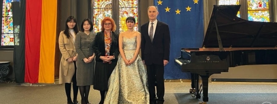 v.l. Xinyi Wang, Prof. Park Aejin, weitere Vertreterin des Oberbürgermeisters Erika Träger, Ju Yeon Park und Prof. Ulrich Schwarz