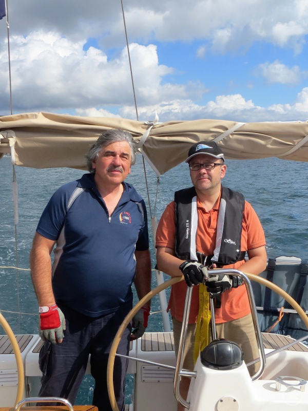 Skipper mit Crewmitglied