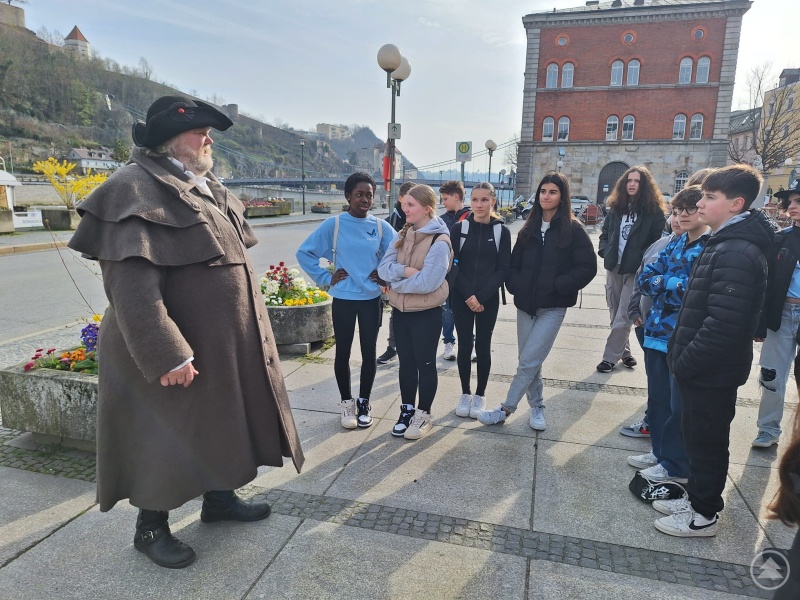 Die 7. Jahrgangsstufe begab sich während einer Stadtfuchs-Führung auf eine faszinierende Reise durch die Geschichte Passaus. Unter dem Motto "Passaus Glanz und Elend" erkundeten die Schülerinnen und Schüler die geheimnisvollen Gassen und historischen Plätze der einst mächtigen Bischofsstadt. Aber auch das große Elend, das die Stadt in Form der Pest heimsuchte, wurde thematisiert. Die Guides in historischen Kostümen entführten sie in längst vergangene Zeiten und erweckten die Geschichte dabei zum Leben.