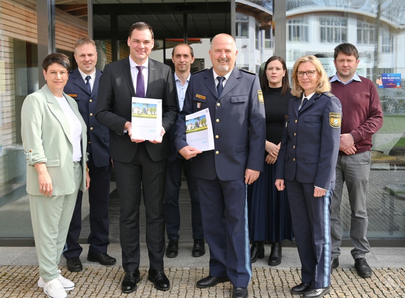 Im Rahmen des jährlich stattfindenden Sicherheitsgespräches haben Polizeivizepräsident Manfred Gigler und die Leiter der Polizeiinspektionen im Landkreis Freyung-Grafenau den Sicherheitsbericht 2023 Herrn Landrat Sebastian Gruber vorgestellt.